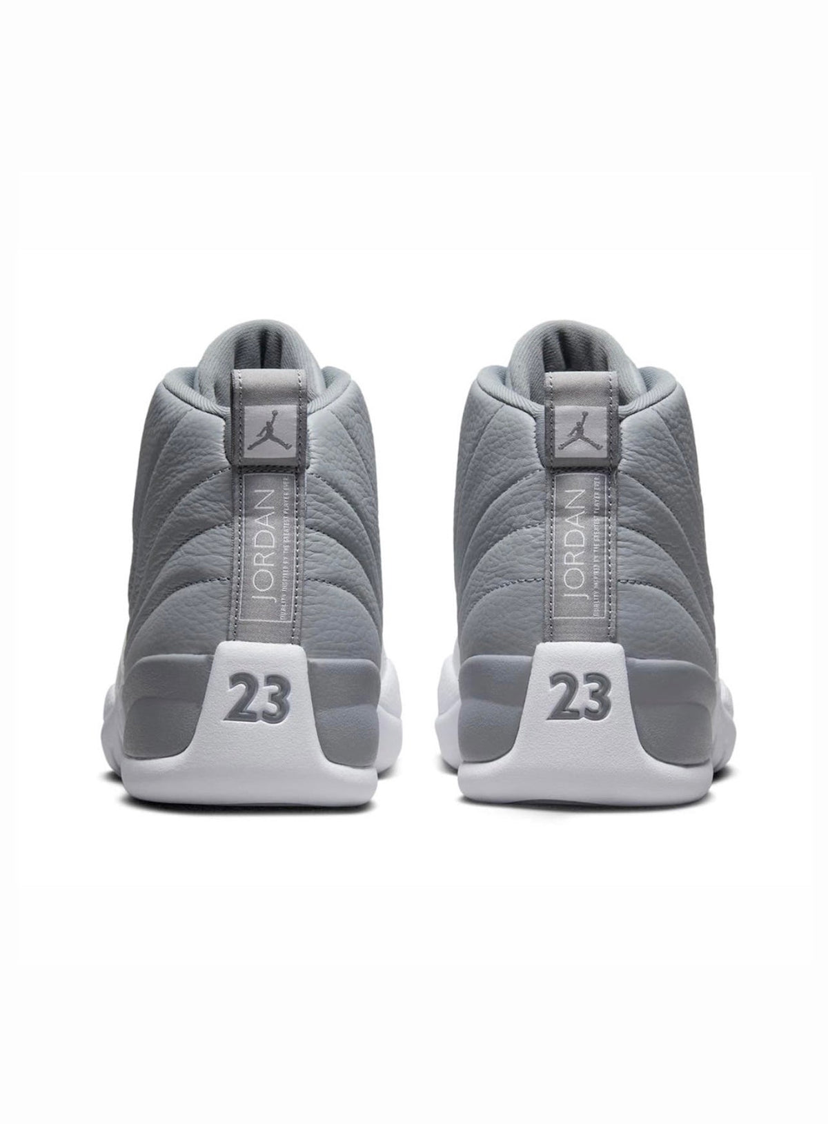 The Air Jordan 12 Retro ‘Stealth’ brings a neutral color palette to the historic silhouette that introduced Zoom Air cushioning to the Jordan line. The grey tumbled leather upper features the 12’s signature stitched lines and a lizard-textured overlay in a solid white finish. Signature Jumpman branding appears on the tongue and heel tab. The mid-top rests on a lightweight Phylon midsole, supplemented by a full-length Zoom Air unit and supported by a herringbone-traction rubber outsol