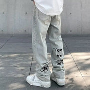 American Gothic Men's Jeans Y2K Retro Straight Denim Trousers Hip Hop Fashion